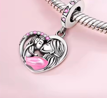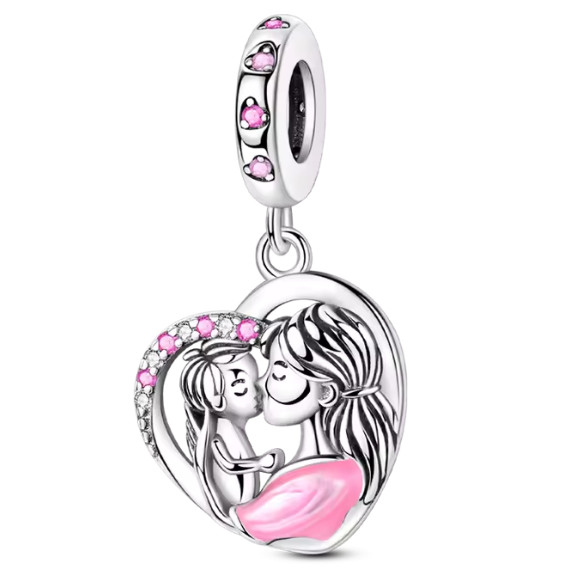 Ez az ezüst szív alakú függő charm egy szeretetteljes anya és gyermeke közti pillanatot örökít meg.